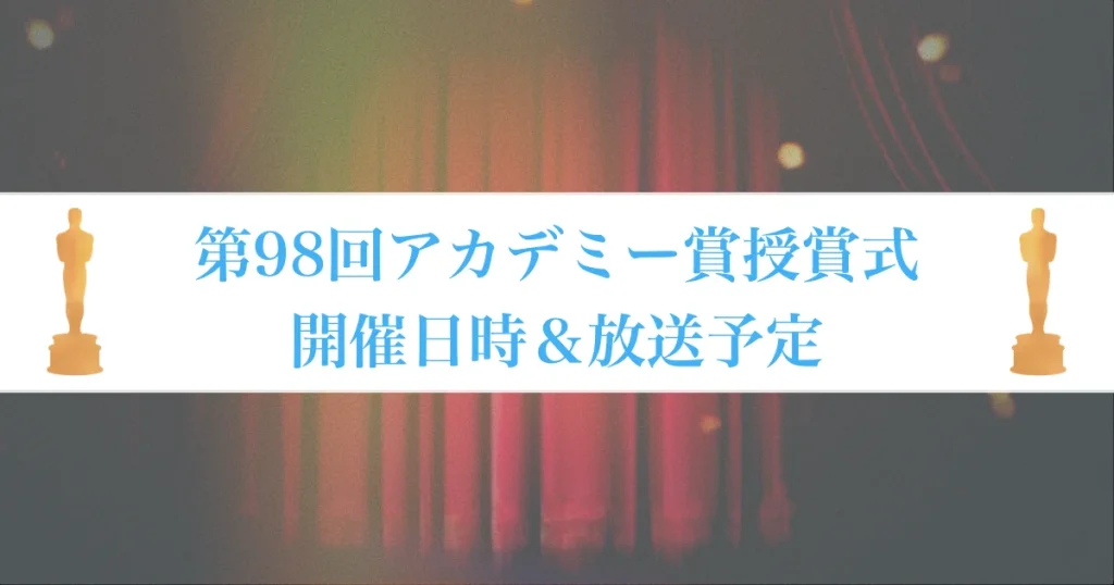 この記事では、第98回アカデミー賞授賞式の開催日時と見どころ、日本国内で生中継・字幕版放送を観る方法を随時ご紹介していきます。