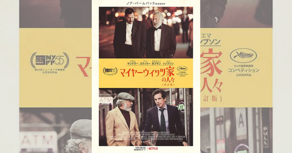 2017年にアメリカで制作された映画『マイヤーウィッツ家の人々 (改訂版)』(原題:The Meyerowitz Stories (New and Selected))は、ニューヨークで暮らす父親に会うために3人の兄妹があつまることで起きる騒動を描いたコメディ映画です。
